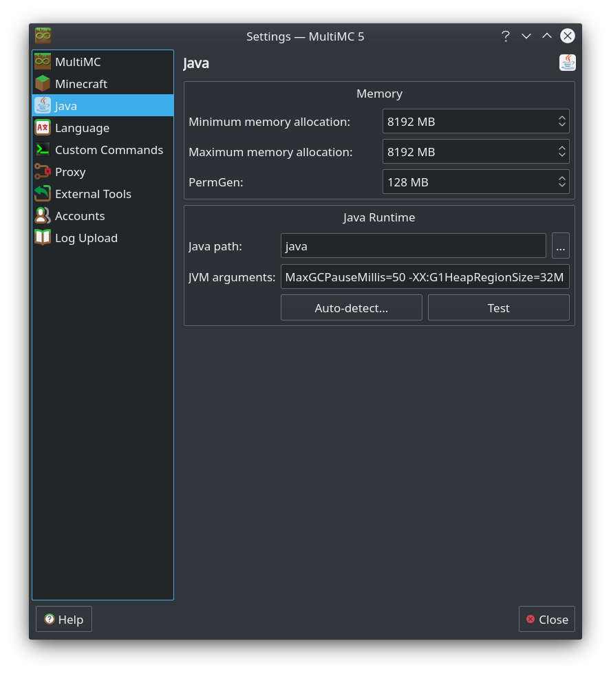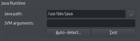 This is where the settings for the Java runtime live, like the location of the runtime and any Java arguments to use.